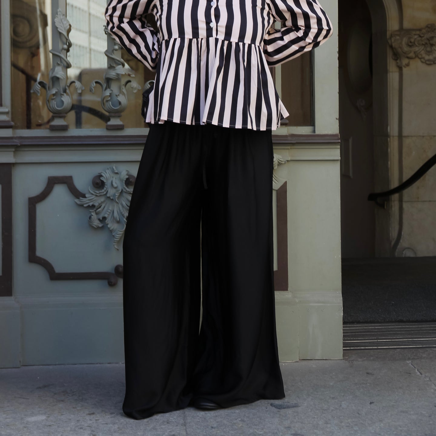 Glatte, fließende Silhouette mit einem Hauch Glanz – bequem und citytauglich zugleich. Die Shiny Hose lässt Sneaker und Boots gleich gut aussehen.